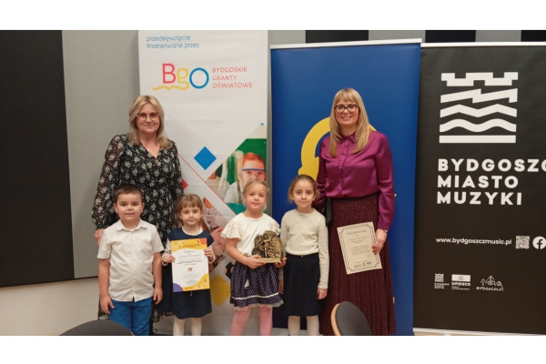 Nasi przedszkolacy brali udział w podsumowaniu projektu "Od Smyka do Smyczka" Bydgoski Rok Muzyki 2025 w Trzech taktach organizowanym w Pałacu Młodzieży. Odebraliśmy nagrody za zajęcie III miejsca w Międzyprzedszkolnym Konkursie muzycznym „Zaśpiewka z naszego podwórka – takt 3”. Otrzymaliśmy również piękną statuetkę dla Przedszkola nr 11 -za szczególne zaangażowanie w przedsięwzięcia edukacyjne w Bydgoskim Roku Muzyki 2025.