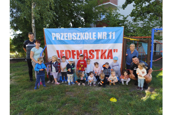 Nasi przedszkolacy w Narodowym Dniu Sportu wykazali się dużą aktywnością i zaangażowaniem. Świetnie się bawili spędzając aktywnie czas na świeżym powietrzu. Pogoda nam dopisała w ten wrześniowy dzień . „Misie”, „Żabki”. „Pszczółki” oraz „Sówki” brały udział w zabawach sportowo-ruchowych, które zorganizowali dla nas trenerzy z Akademii Piłkarskiego Rozwoju (APR) Lampart. Dla najstarszych przedszkolaków - „Pszczółek" i „Sówek” został zorganizowany mecz piłki nożnej. Jak przystało na poważne rozgrywki wyznaczona została „Strefa Kibica” oraz „Ławka Rezerwowych”. Drużyny dzielnie broniły swoich bramek oraz odważnie napierały na bramkę przeciwnika. Radości było co niemiara z prawdziwej rywalizacji i ze zdobytych bramek. Oczywiście drużyny zdobywały gole dzięki zaangażowaniu kibiców.