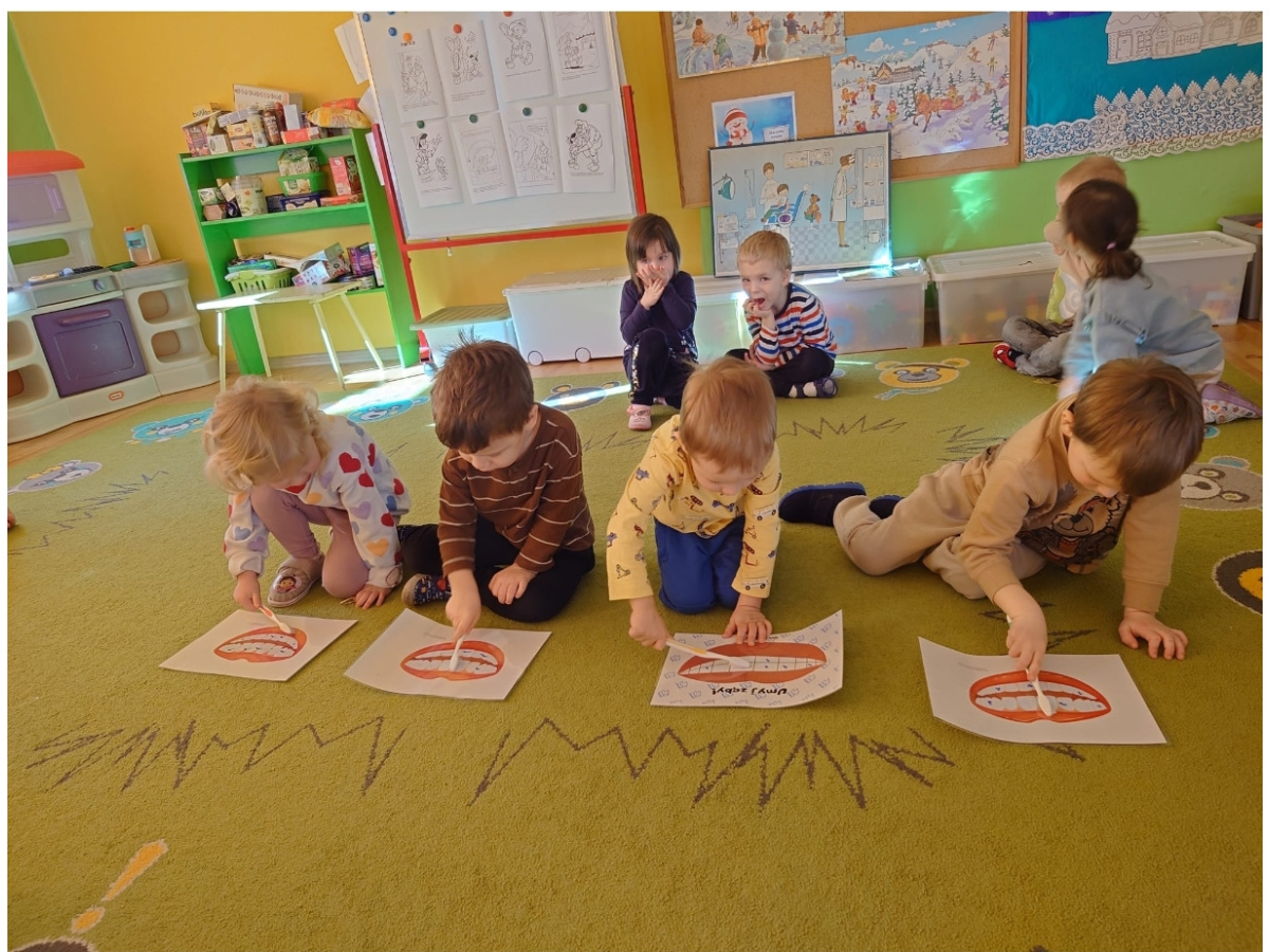 Podczas zajęć przedszkolaki poznały zasady prawidłowego szczotkowania zębów, dowiedziały się, jakie produkty sprzyjają zdrowym zębom, a jakich lepiej unikać. Nie zabrakło również ciekawych zabaw edukacyjnych, oglądania ilustracji oraz wspólnego ćwiczenia mycia zębów na specjalnych modelach.