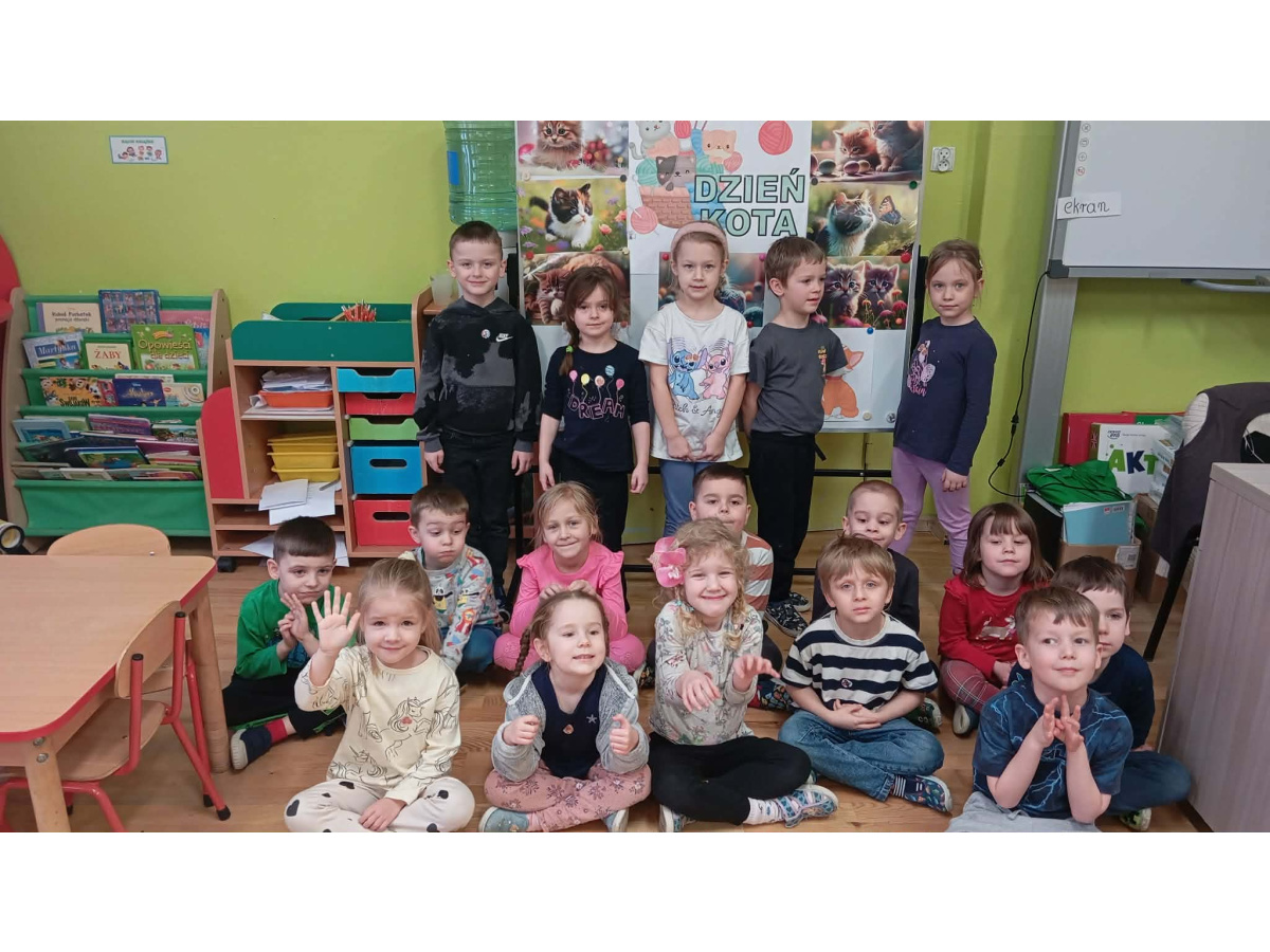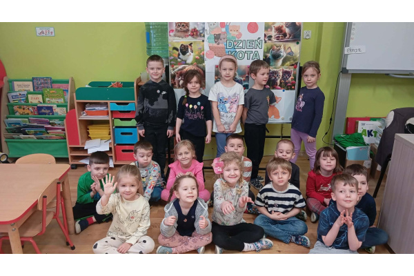 Dzień Kota obchodzony 17 lutego jest doskonałą okazją, aby przybliżyć dzieciom świat tych niezwykłych zwierząt oraz nauczyć je empatii i troski o pupile.Tego dnia w przedszkolu zaroiło się od kotów – przedszkolaki przyniosły pluszowe kotki, koty widniały na bluzeczkach, sukienkach, skarpetkach. Sale zamieniły się w kocią krainę pełną dekoracji, ilustracji i książeczek o mruczących bohaterach. Dzieci poznały ciekawostki o kotach – co jedzą, jak się porozumiewają oraz dlaczego mruczą. Przedszkolaki wykonały także prace plastyczne o tematyce kociej.