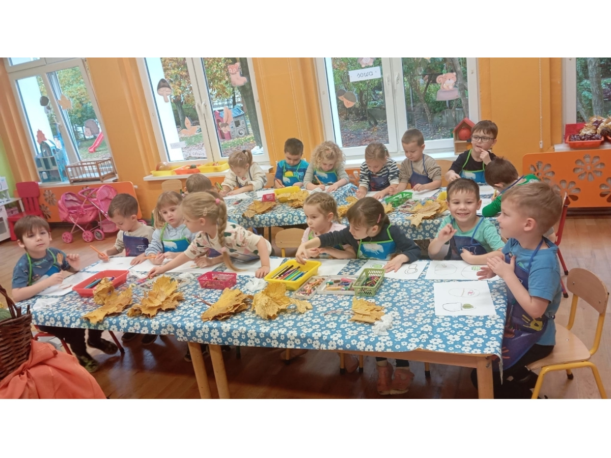 To był dzień artystyczny. Przy dźwiękach muzyki relaksacyjnej „Pszczółki” rysowały martwą naturę. Kompozycja miała charakter jesienny: wspomnienia owocowo-warzywnej przygody oraz jesiennej nostalgii za oknem. Mali artyści stanęli na wysokości zadania, wczuli się w swoją rolę.