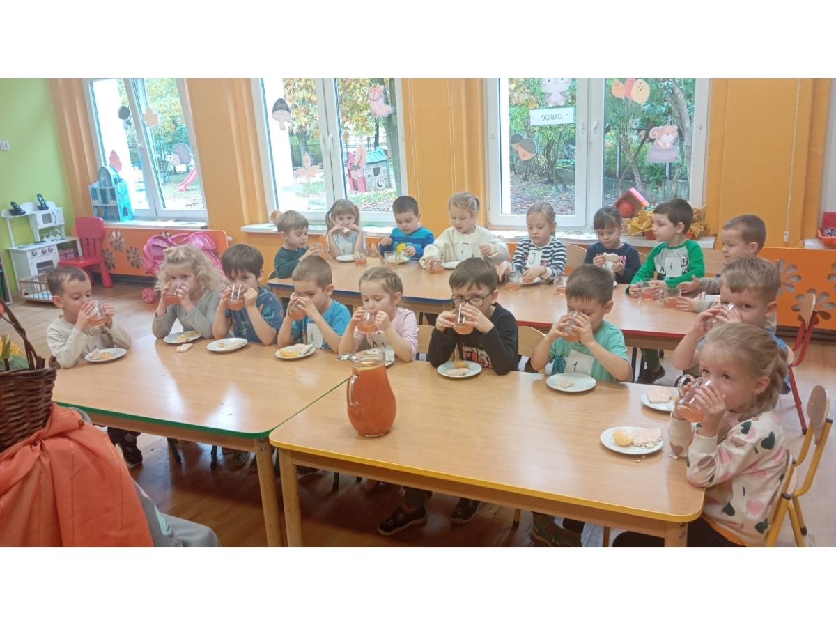 Po tak wyczerpującej pracy twórczej, „Pszczółki” zrobiły „bombę witaminową”, wyciskając sok z owoców cytrusowych z dodatkiem pigwy. To była smaczna owocowa nagroda. Polecamy wszystkim kontakt ze sztuką i dobrymi smakami.