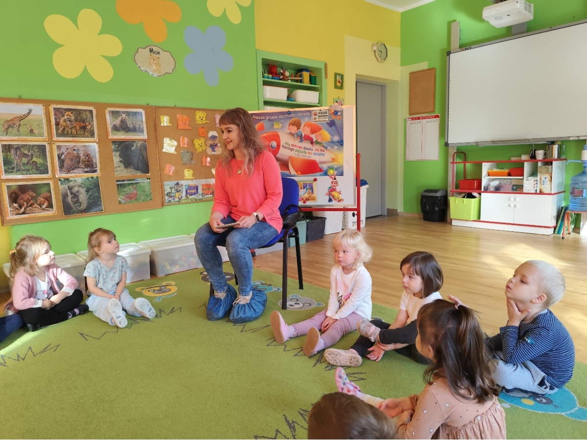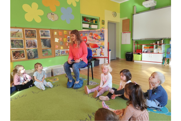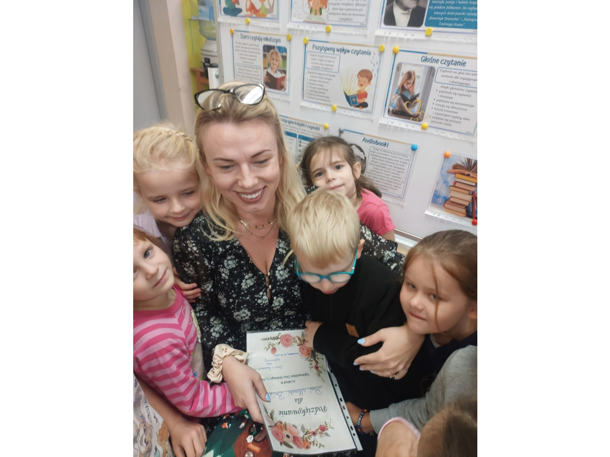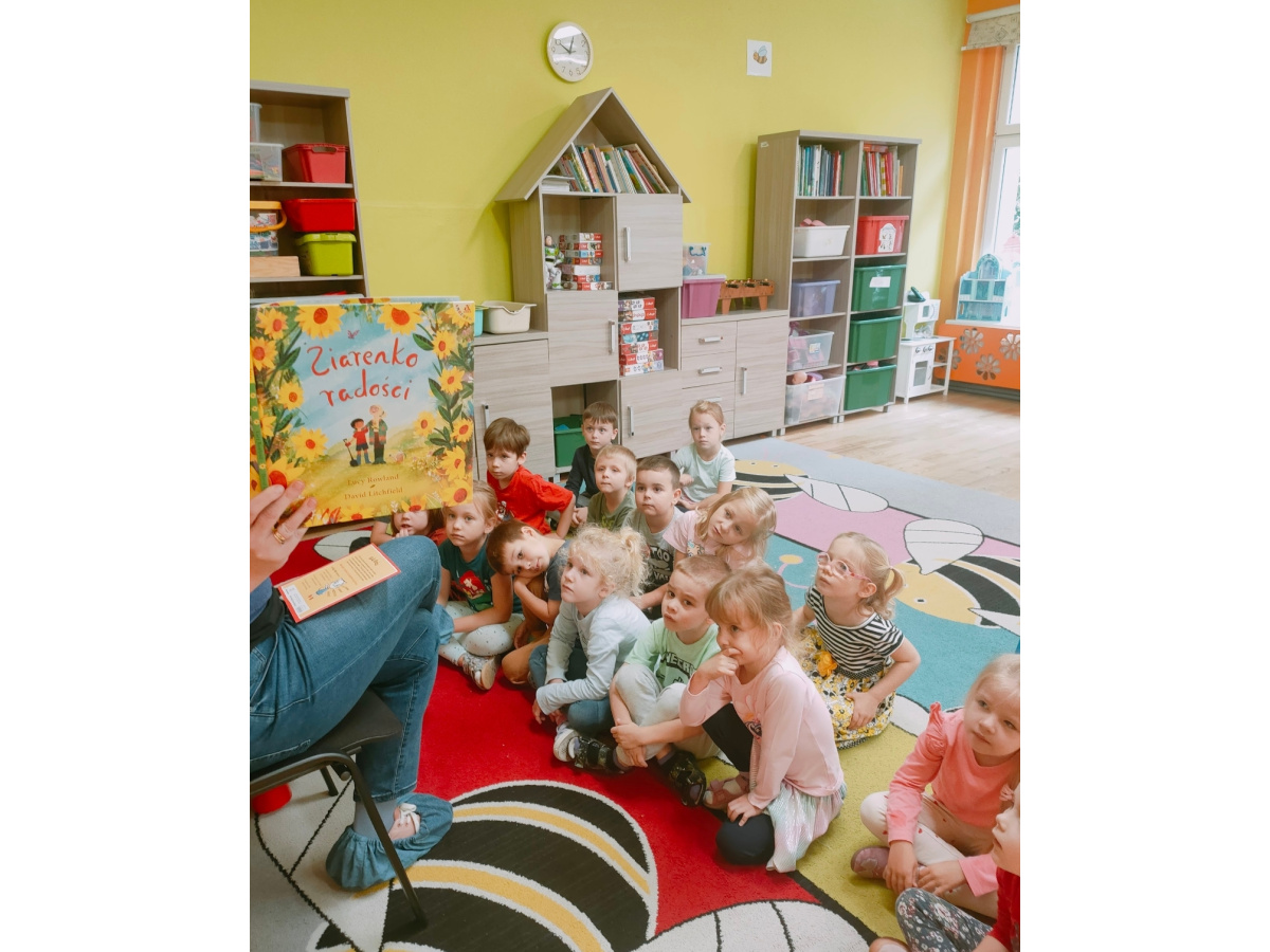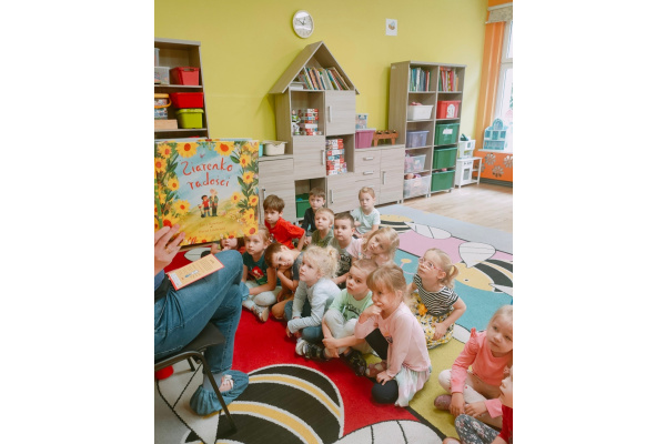 29.09.2025r. włączyliśmy się w obchody Ogólnopolskiego Dnia Głośnego Czytania. Ogólnopolski Dzień Głośnego Czytania powstał w Polskiej Izbie Książki w 2001r. Patronką wybrano Janinę Porazińską, wybitną polską pisarkę. Data 29 września to dzień jej urodzin. Celem święta jest propagowanie czytelnictwa wśród dzieci, młodzieży i dorosłych. Zaprosiliśmy do przedszkola rodziców, którzy czytali naszym dzieciom w poszczególnych grupach. W grupie "Żabki" i "Sówki" czytała mama Tadeusza i Józefa pani Monika Bułat. Dzieci usłyszały fragment książki pt.: "Leśne sprawy Misi Adwokatki" autorstwa E. Ruszkiewicz, oraz "A jak Anakonda". "Misie" zaprosiły mamę Kosmy ze znanymi wierszami J. Tuwima dla maluchów, a w grupie "Pszczółek" czytała mama Patryka i tata Marii.