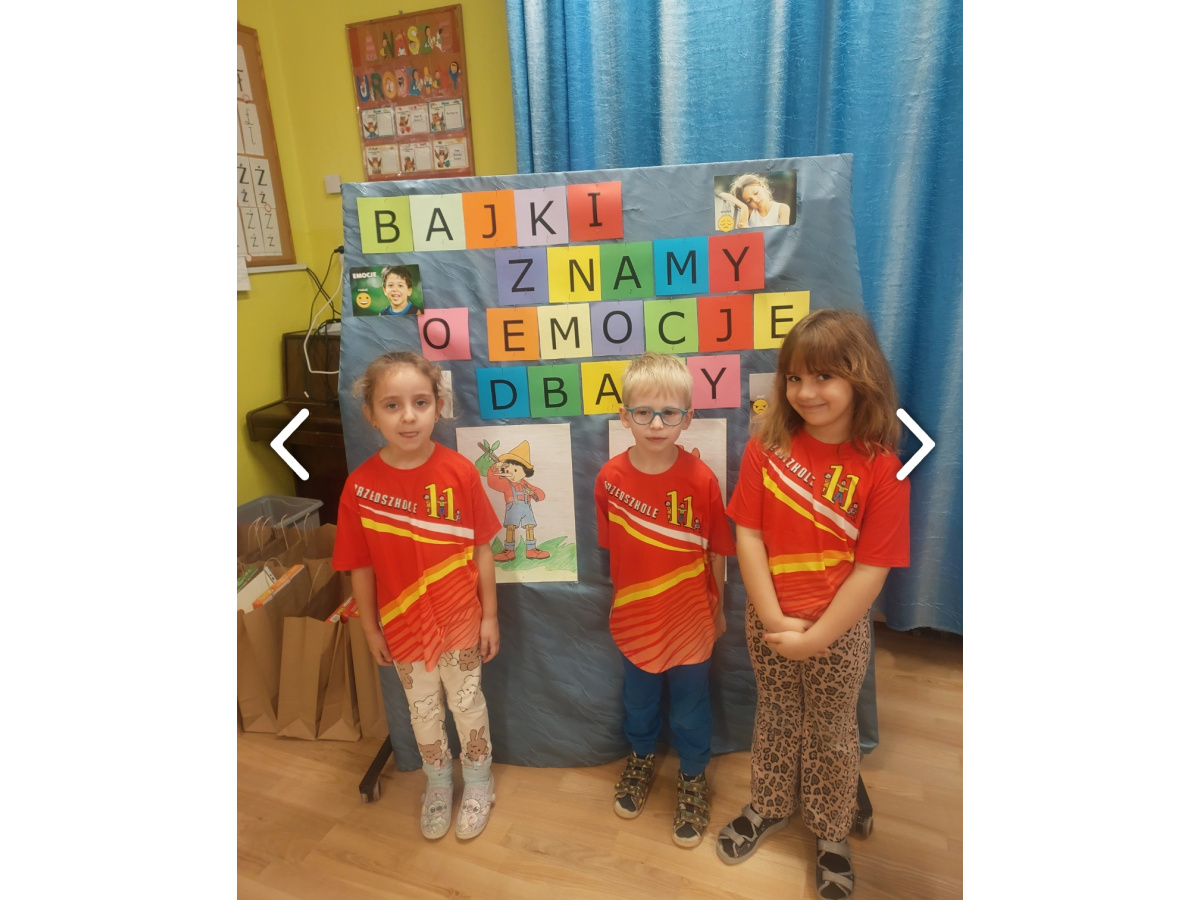 17 października 2025r. w ramach projektu edukacyjnego „Cała Bydgoszcz czyta dzieciom” (BGO) odbył się turniej wiedzy pt.: „Bajki znamy o emocje i uczucia dbamy”. W konkursie wzięły udział dzieci 4, 5 i 6-letnie z naszego przedszkola. Dzieci z wszystkich drużyn sprawnie wykonywały zadania konkursowe: odpowiadały na pytania otwarte, składały obrazki postaci bajkowych, układały historyjki obrazkowe , przygotowały koszyczki dla chorej babci, układały bajkowe puzzle, umiały skojarzyć rekwizyty z określoną bajką, uczestniczyły w zabawach muzyczno- ruchowych, integracyjnych doskonale się przy tym bawiąc. Panowała przyjazna i radosna atmosfera, która dała dzieciom możliwość na przeżycie pozytywnych emocji związanych z dziecięcą rywalizacją. Na koniec czekały na dzieci nagrody oraz słodki poczęstunek.
