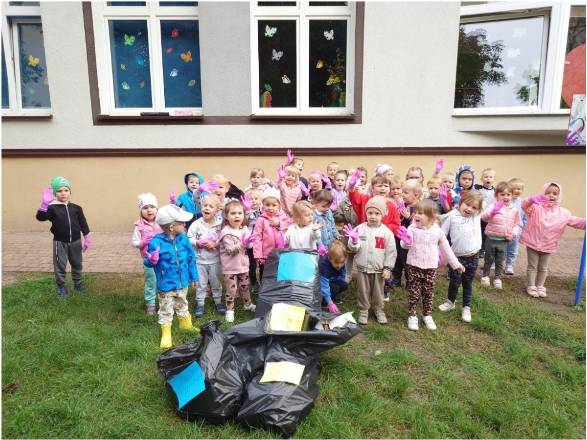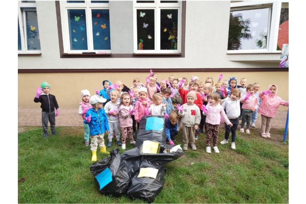 18 września nasze przedszkole jak co roku wzięło udział w akcji Sprzątania Świata. W tym roku hasło przewodnie brzmiało "W naturę z kulturą". Działania związane z akcją Sprzątania Świata uwrażliwiają dzieci na problem zaśmiecania środowiska, kształtują u nich nawyk dbania o czystość otoczenia a także uczą segregacji odpadów przez działanie. Dodatkowo dzieci uświadamiają sobie, że śmieci to realne zagrożenie dla zwierząt a czyste środowisko to dla nich bezpieczny dom. W tym dniu przedszkolaki wzięły udział w zabawach edukacyjnych, tworzyły plakaty i piękne prace plastyczne a także wzięły udział w konkursie wiedzy o Sprzątaniu Świata. Głównym punktem obchodów tego dnia było posprzątanie ogrodu przedszkolnego. Dzieci oczywiście pamiętały o segregacji śmieci.