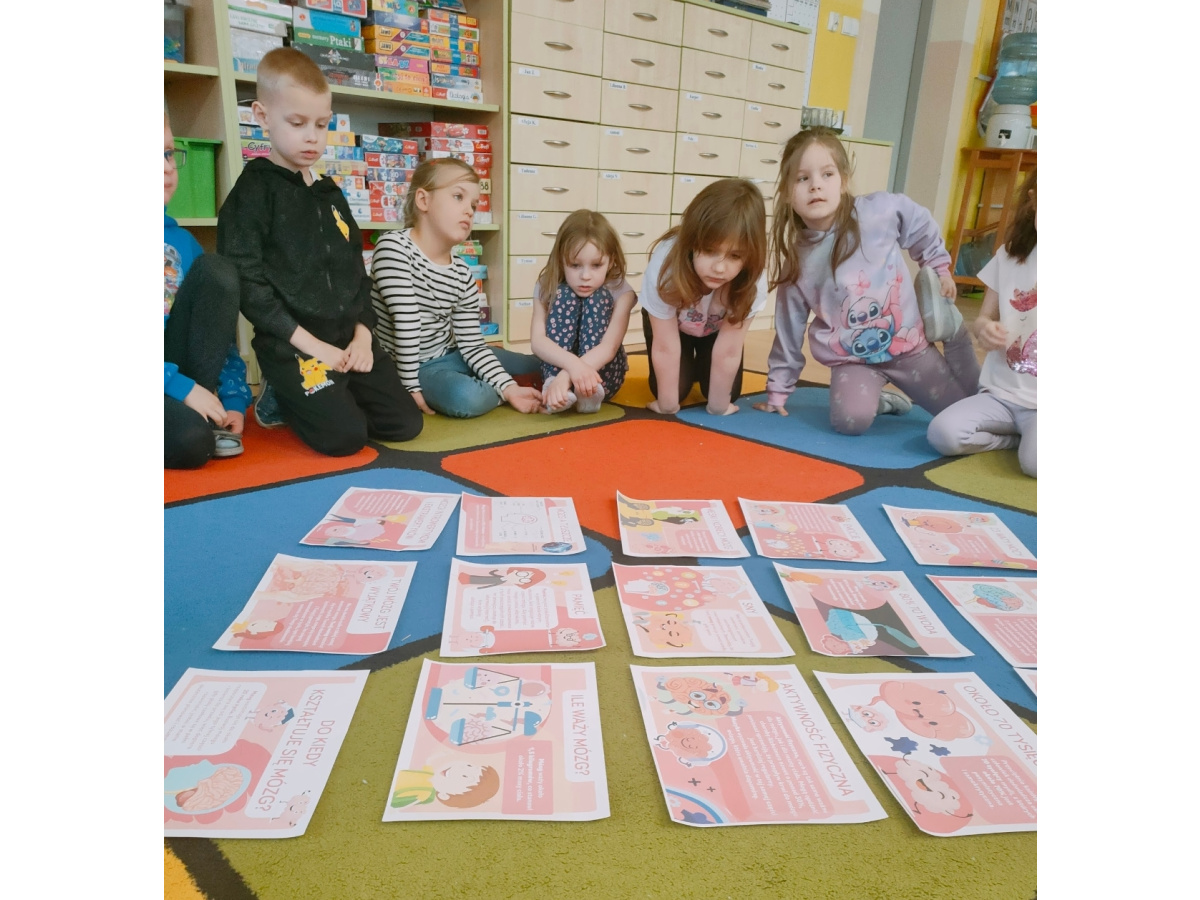 W minionym tygodniu w naszym przedszkolu obchodziliśmy Tydzień Mózgu – czas pełen ciekawych zajęć, zabaw i doświadczeń, które miały na celu przybliżenie dzieciom, jak działa nasz mózg oraz jak możemy o niego dbać. Nie zabrakło również kreatywnych aktywności –ćwiczenia wspierające współpracę obu półkul mózgowych, poprawiające koncentrację oraz pomagające dzieciom wyciszyć się i lepiej skupić na zadaniach. Dzieci układały puzzle, rozwiązywały zagadki, brały udział w zabawach pamięciowych oraz wykonywały prace plastyczne inspirowane tematyką mózgu.