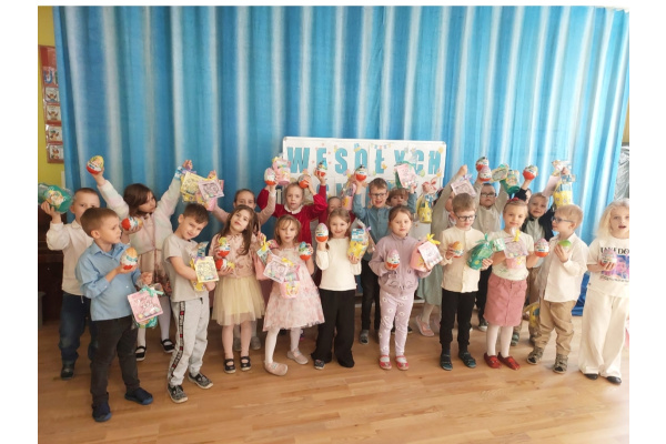 Największą atrakcją dnia była jednak wizyta Zajączka Wielkanocnego. Zostawił on dla dzieci upominki, które zostały sprytnie ukryte - niektóre nawet w przedszkolnym ogrodzie. To był wyjątkowy dzień pełen radości, wspólnej zabawy i wielkanocnych tradycji.