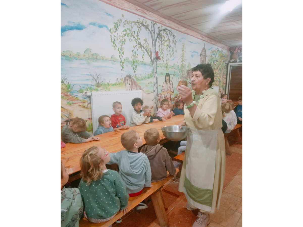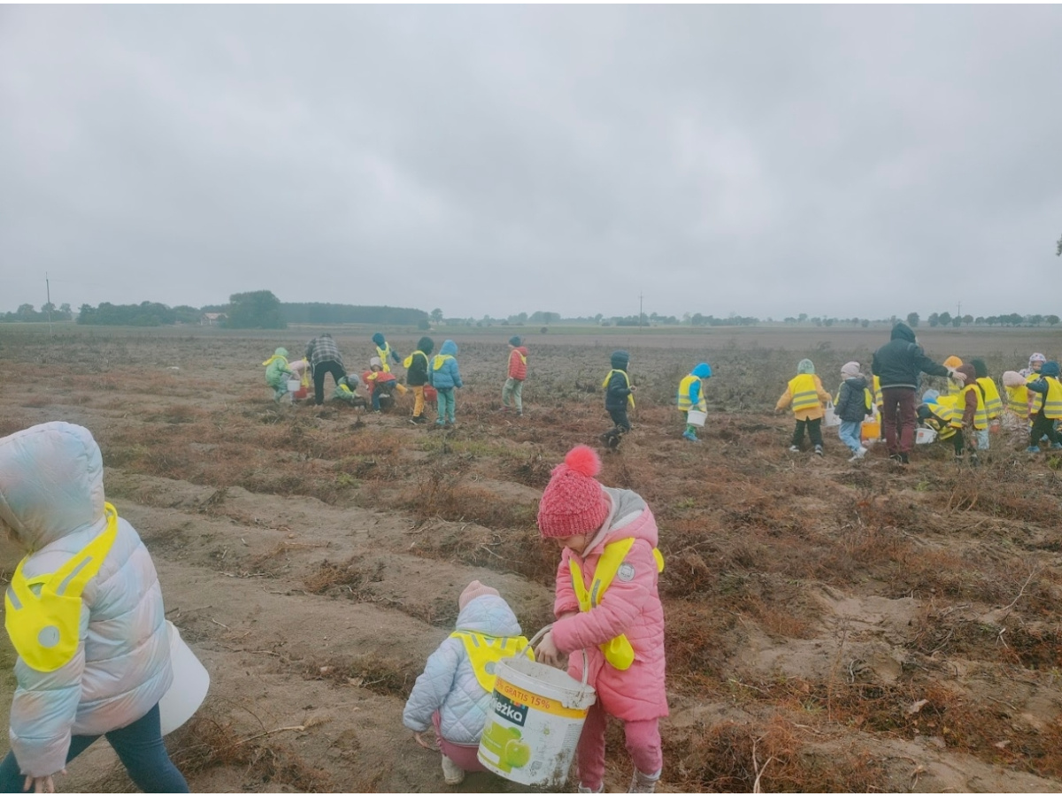 W październiku grupy "Pszczółki" i "Sówki" pojechały na wycieczkę do "Zagrody Pałuckiej" w Gąsawie. Dzieci własnoręcznie upiekły drożdżowe bułeczki, poznały budowę oraz historię ziemniaka a także wzięły udział w wykopkach. Każdy przedszkolak wykonał również ozdobę z ziemniaka. Wycieczka zakończyła się poczęstunkiem składającym się z bułeczek, ziemniaczków z grilla, konfitury oraz twarożku. Po wykopkach dzieciom apetyt bardzo dopisywał.